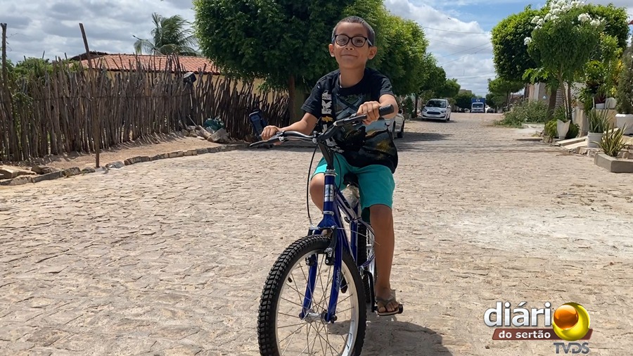 Ao saber da promoção “Sonho de Natal”, da TV Diário do Sertão em parceria com Lojão Rio do Peixe, David decidiu gravar um vídeo pedindo o conserto da sua bicicleta.