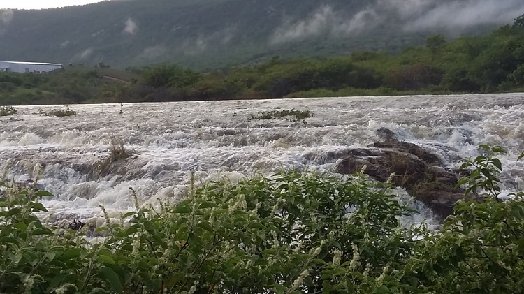 “O açude da Cagepa amanheceu sangrando muito forte aqui em São José de Piranhas”, relata o telenauta.