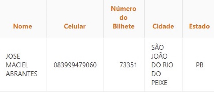 O ganhador da TV foi José Maciel Abrantes da cidade de São João do Rio do Peixe, na região de Cajazeiras. O número sorteado para a premiação dos R$ 50 mil foi o 662921.