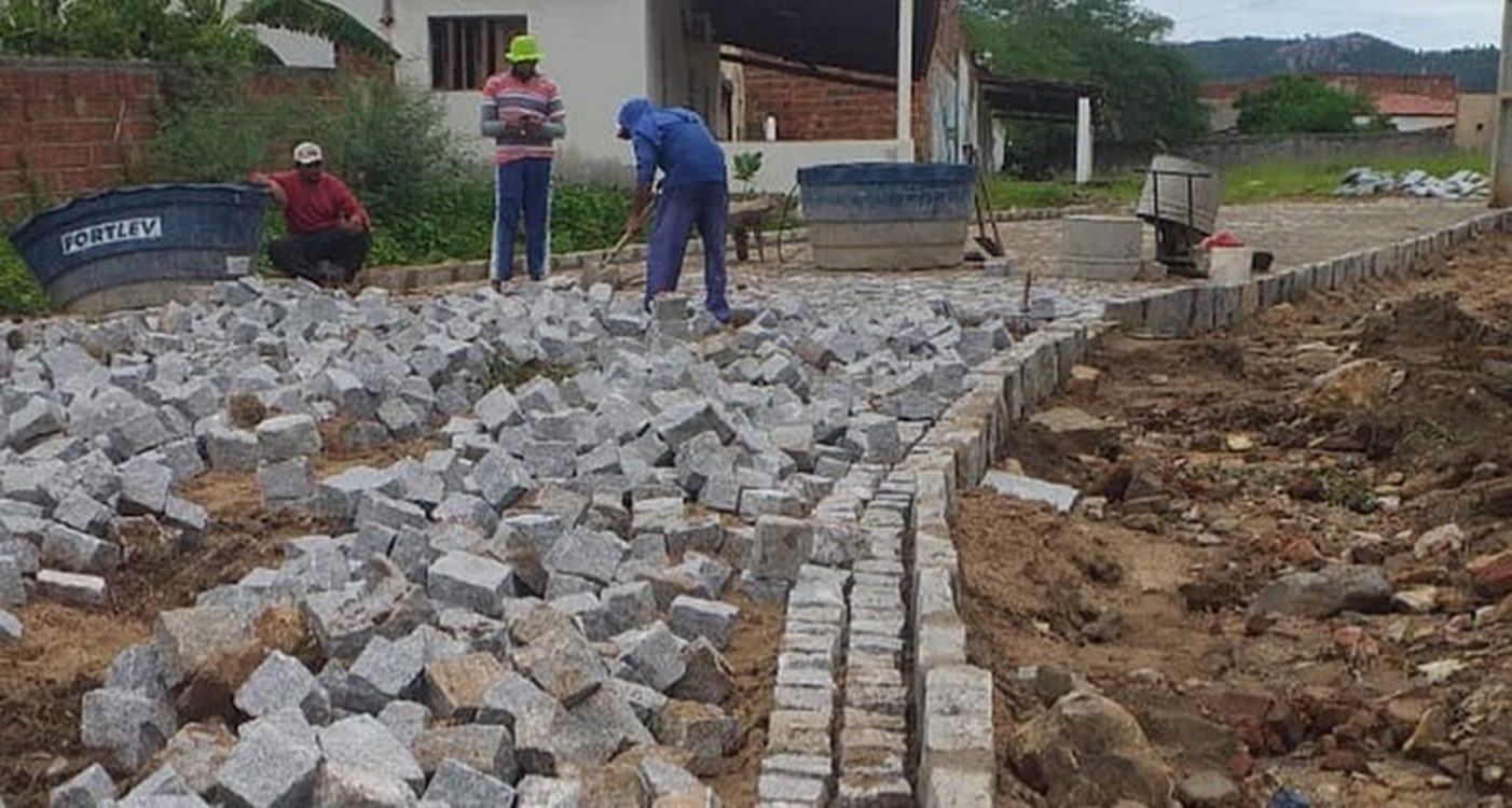 Prefeito Célio da Usina visita obra de pavimentação de calçamento na comunidade de Cachoeira de Cima