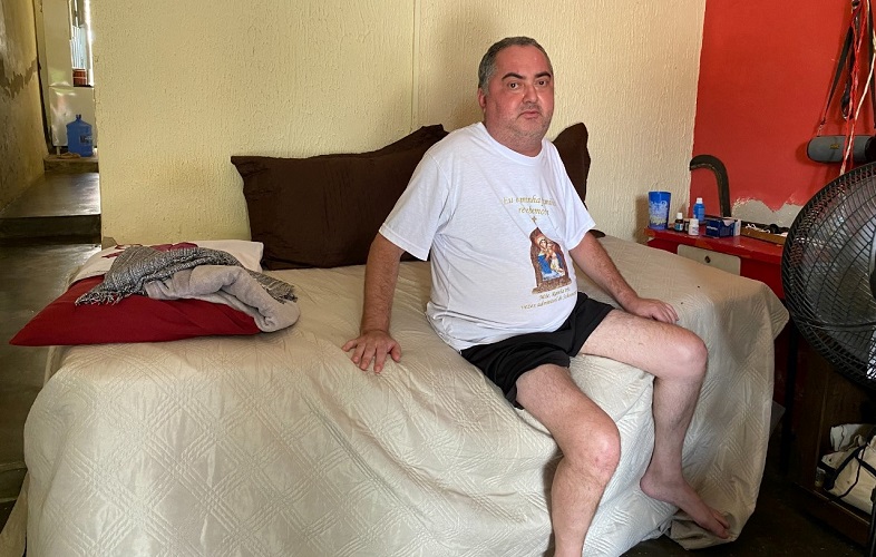 Fábio está desempregado há muito tempo porque não tem mais condições de saúde para trabalhar. Ele sofre de problemas ósseos, atrofia muscular nas pernas e excesso de ácido úrico.