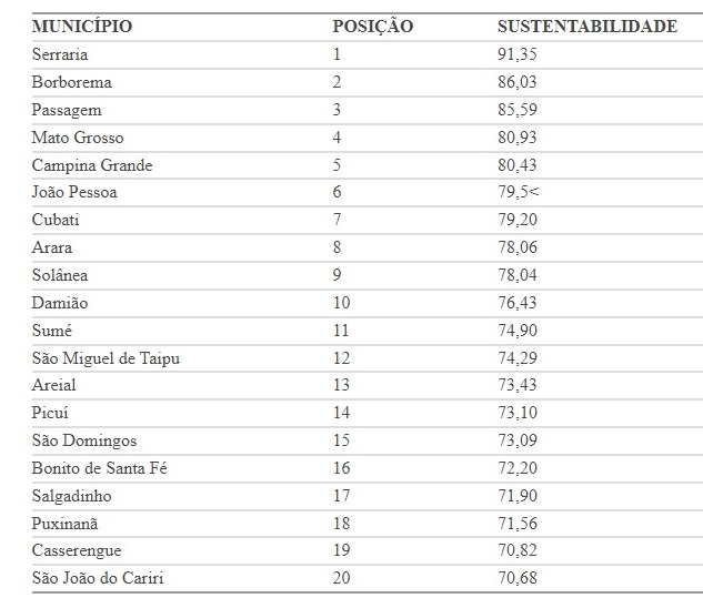 O município de Bonito de Santa Fé, no sertão paraibano, ficou na 16ª posição no ranking das 20 cidades que são excelência em gestão de sustentabilidade no Estado da Paraíba.