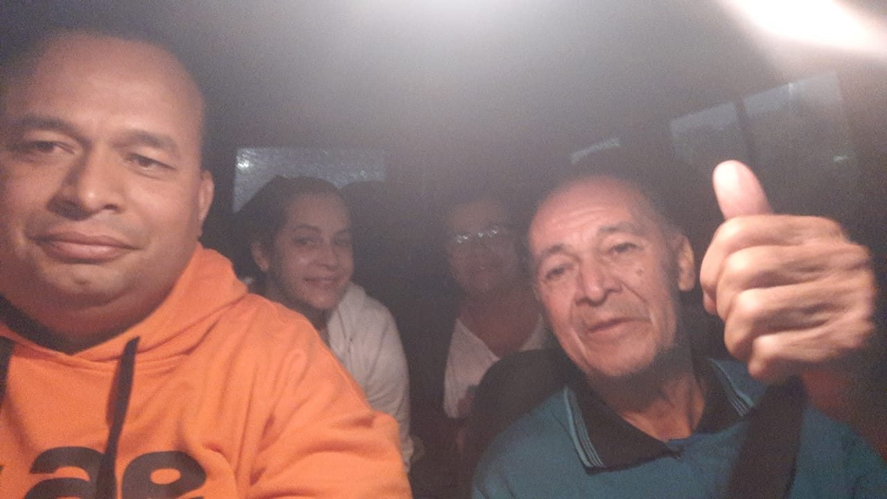 Seu Roberto (à direita) faz sinal de positivo ao ser encontrado pelos familiares (Foto: Redes Sociais)