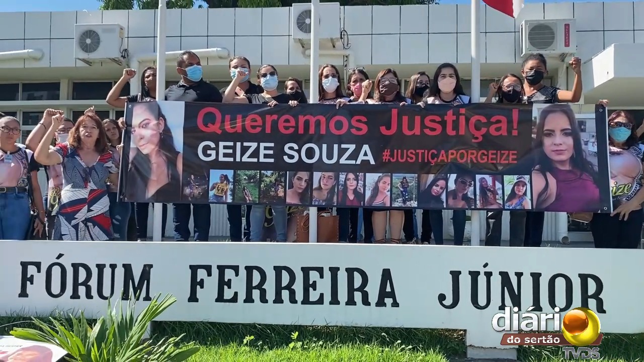 Familiares, amigos e representantes de entidades de defesa da mulher fizeram uma manifestação na porta do Fórum Ferreira Júnior, na manhã desta quinta-feira (17), pedindo a condenação do réu Sebastião Aprígio de Sousa Neto, acusado de matar sua companheira, Geize Pinto de Souza (26 anos), em Cajazeiras, no dia 08 de janeiro de 2022. O réu vai se submeter a júri popular nesta quinta.