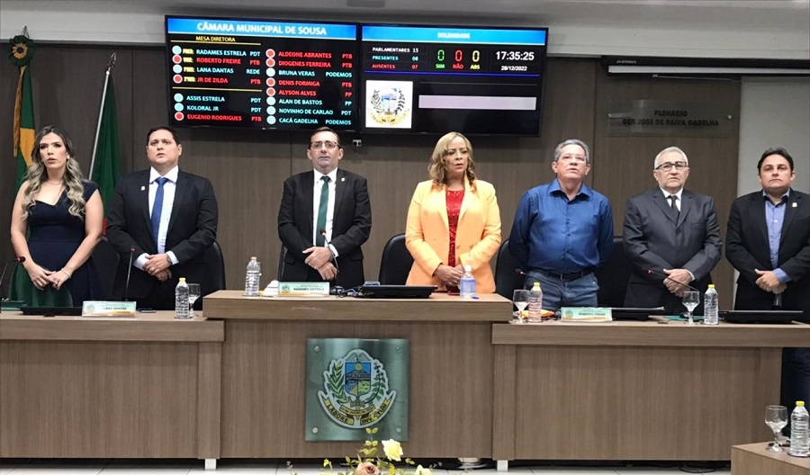 Composição da nova Mesa Diretora da Câmara Municipal de Sousa foi apresentada oficialmente à população. Prefeito, vice-prefeito e os vereadores do PTB não compareceram à solenidade