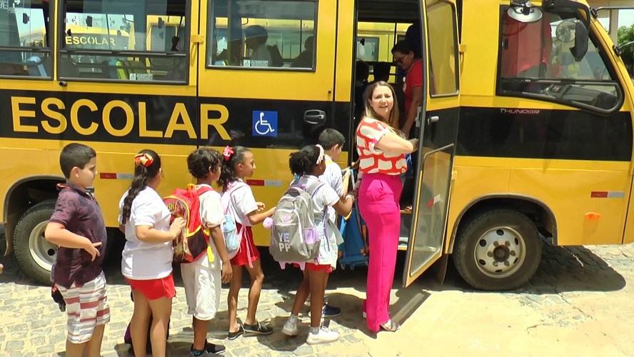Prefeita Denise Bayma leva alunos para passear em novo ônibus (Foto: Reprodução/TV Diário do Sertão)