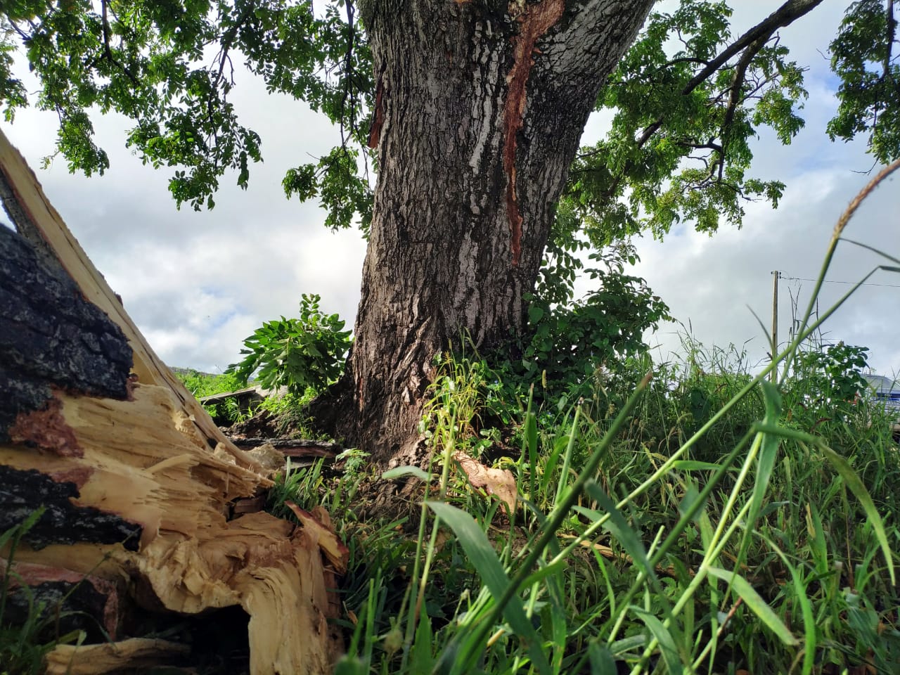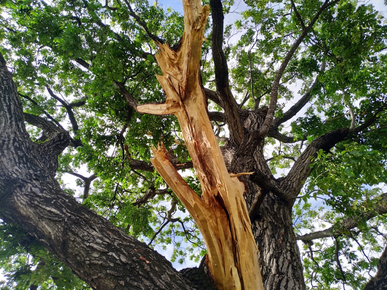 Confira como ficou a árvore atingida pelo raio: