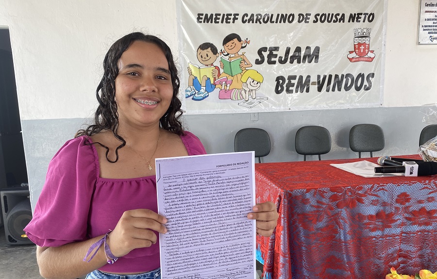A aluna Maria Vitória de Abreu, de 14 anos, que estuda na Escola Municipal Carolino de Souza Neto, no distrito de Divinópolis, em Cajazeiras, está entre os vencedores da 12ª edição do Concurso de Desenho e Redação da Controladoria-Geral da União, na categoria Redação – 9º ano do Ensino Fundamental. A etapa estadual do concurso é promovida em parceria com o Ministério Público da Paraíba e apoio do Fórum Paraibano de Combate à Corrupção (Focco).