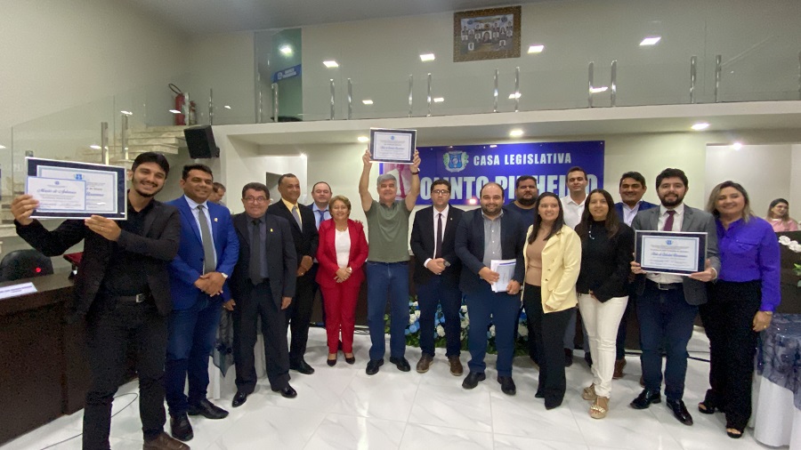 Durante sessão especial na Câmara Municipal, além da assinatura da ordem de serviço, aconteceu a entrega de Títulos de Cidadão Uiraunense para figuras de destaque no município