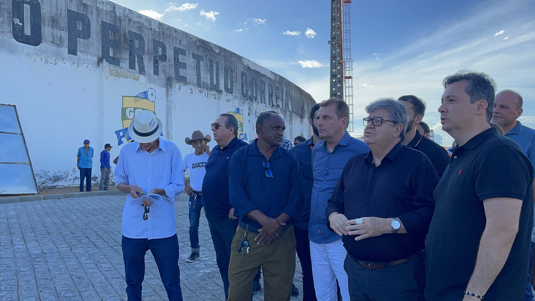 Governador inspeciona obra do Estádio Perpetão em Cajazeiras (Foto: Victor Batista / TV Diário do Sertão)