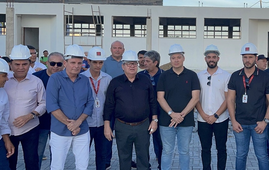 João Azevêdo inspeciona obra da Escola Manoel Mangueira em Cajazeiras (Foto: Victor Batista / TV Diário do Sertão)
