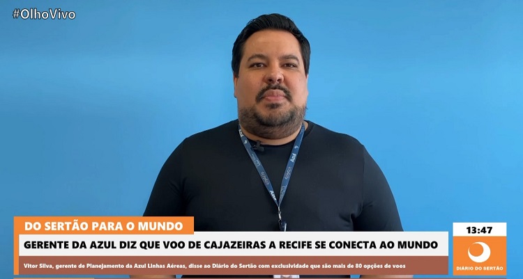 O gerente geral de Planejamento de Malha da Azul Linhas Aéreas, Vitor Silva, conversou com exclusividade com o Diário do Sertão e destacou algumas informações relevantes quanto ao voo de Cajazeiras a Recife-PE que terá início no dia 17 de julho próximo.