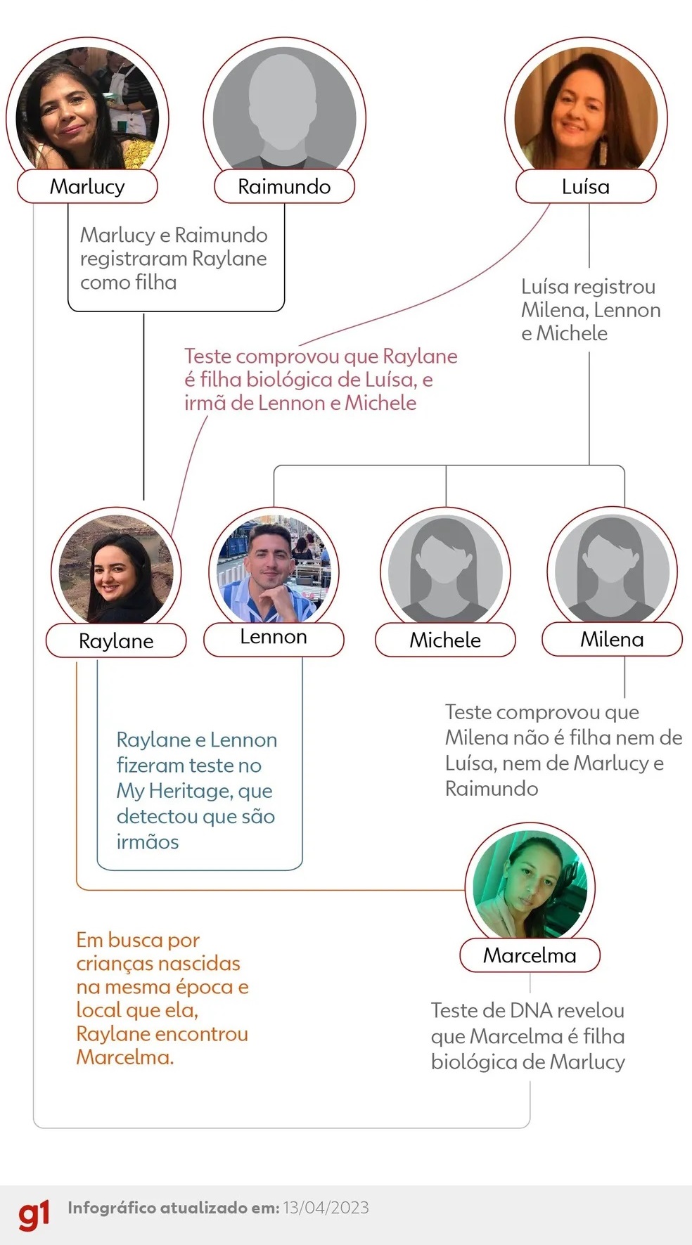Primeiro Raylane descobriu, em um site de busca de familiares, que ela tem compatibilidade genética com um homem de 30 anos chamado Lennon Carvalho, que também nasceu em Cajazeiras e mora na Irlanda. Lennon tem duas irmãs: a mais velha, Michele, que mora em Cajazeiras, e a mais nova, Milena, que mora em João Pessoa com a mãe, Luísa Maria. Ao aprofundar a conversa, Lennon descobriu que Raylane nasceu no mesmo dia e hospital que sua irmã mais nova, Milena, em 5 de agosto de 1994.