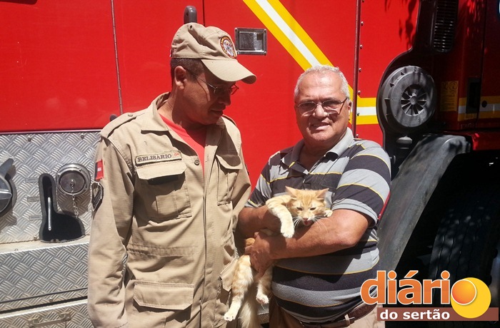 Os sargentos do corpo de bombeiros, Antônio Belisário e Semaías Victor foram ao local e conseguiram salvar o gatinho que foi entregue ao dono.