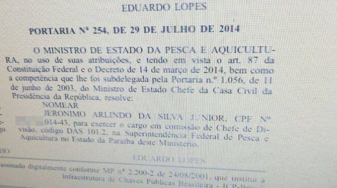 O sousense Jerônimo Júnior que é presidente da Colônia de Pescadores do Distrito de São Gonçalo, recentemente foi nomeado para assumir a Chefia de Divisão na Superintendência Federal de Pesca e Aquicultura na Paraíba.