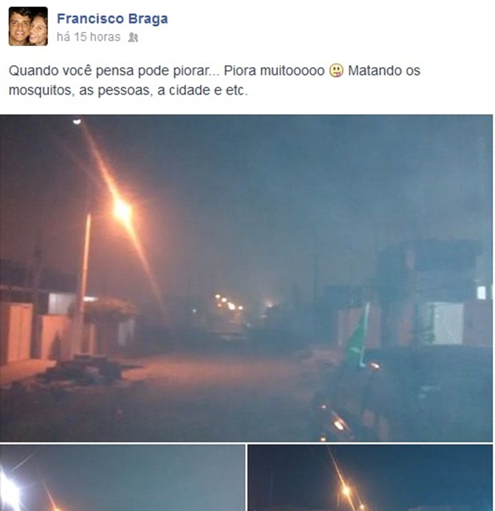 Nas redes sociais os internautas postaram fotos da cidade coberta pela fumaça: