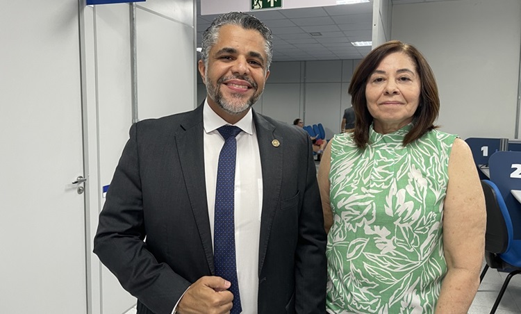 Gerente executivo do INSS em Campina Grande, Marcus Vinicius Braga de Farias e Aparecida Casemiro, funcionária da agência de Sousa – Foto: TVDS