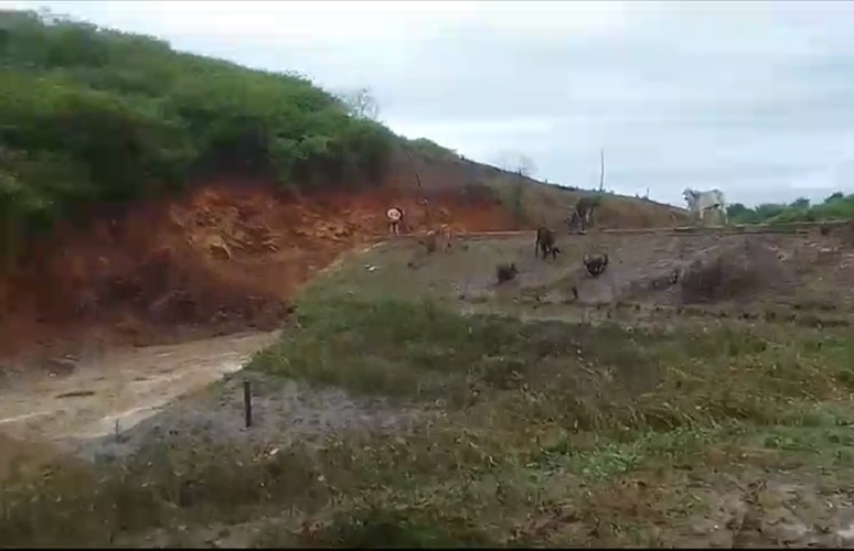 Vários vídeos de moradores da localidade registraram a quantidade de água passando pelo meio da parede destruída. Em um dos vídeos o internauta mostra peixes saltando na terra, e em um outro registrado na cidade de Ibiara, uma retroescavadeira aparece quase totalmente coberta pela água.