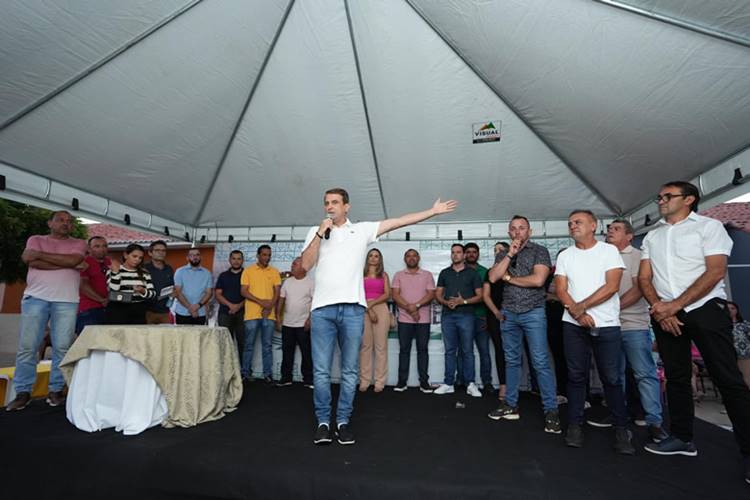 Bal Lins assina ordem de serviço para reconstrução da praça do bairro São Sebastião, em São José de Piranhas. Foto: Divulgação / Marconi Cruz