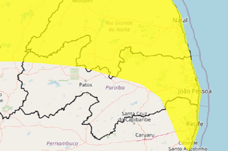 Veja abaixo as 130 cidades da Paraíba que estão sob alerta amarelo: (municípios sertanejos em destaque)