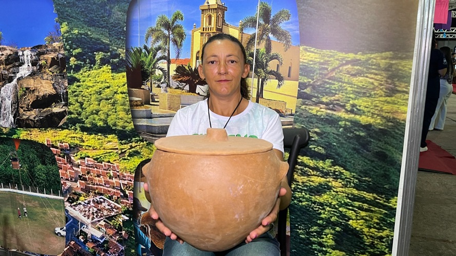 O repórter José Dias Neto disse que ficou "maravilhado" ao ver o trabalho da sertaneja que produziu peças durante o evento, mostrando aos participantes da feira como são feitos os produtos