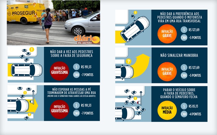 O motorista que parar sobre a faixa ou colocar os pedestres em situação de risco será multado em até R$ 191,53.