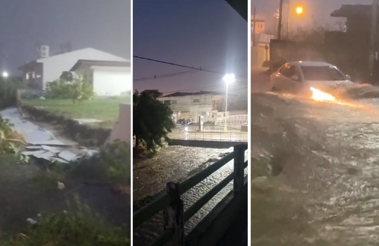 Vídeos circulam nas redes sociais onde mostram a água adentrando em residências, supermercados, ruas totalmente alagadas e vários outros transtornos. O Canal do Estreito que corta toda a cidade e o Canal da Bimbarra que corta alguns bairros, ficaram quase transbordando