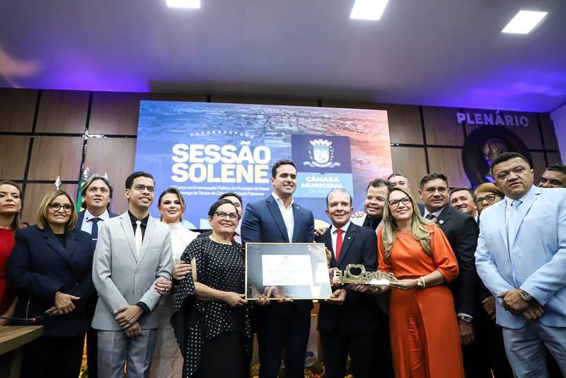 Durante a sessão, foram entregues Títulos de Cidadão Patoense a diversas personalidades que têm contribuído com o crescimento e o fortalecimento de Patos. Entre os homenageados da noite estiveram o presidente da Assembleia Legislativa, Adriano Galdino, o vice-governador Lucas Ribeiro, e a jornalista Nayane Rodrigues, que atualmente atua na equipe da deputada Francisca Motta.
