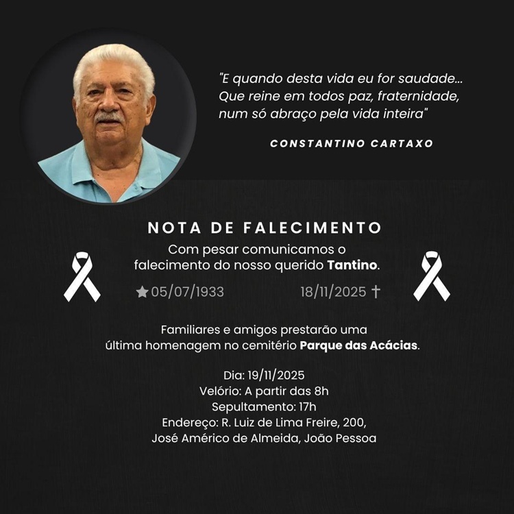 A cultura cajazeirense perde um de seus representantes mais sensíveis e dedicados. A poesia de Constantino Cartaxo permanece como legado de afeto, memória e identidade sertaneja.
