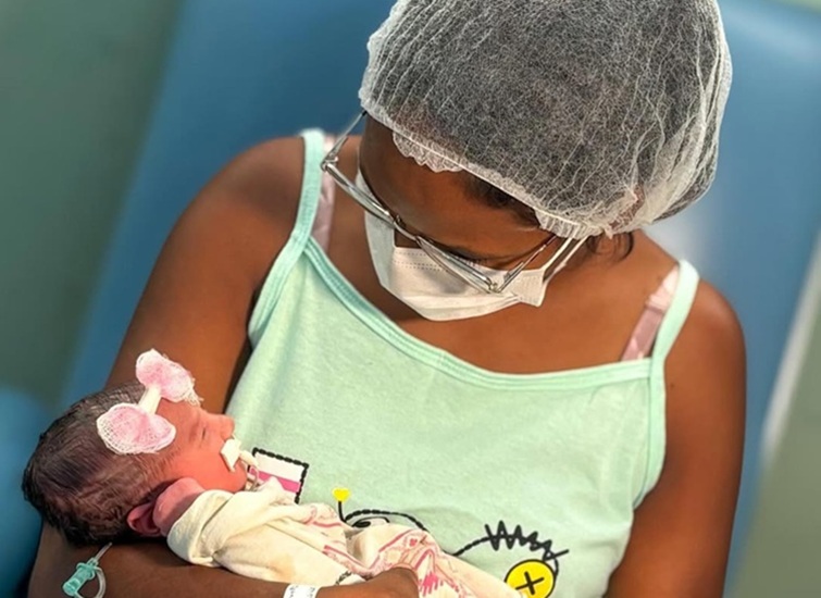 - A pequena Ariane, com 2,110 kg, veio ao mundo por parto normal, no Isea, em Campina Grande – Foto: divulgação/Instagram/Isea