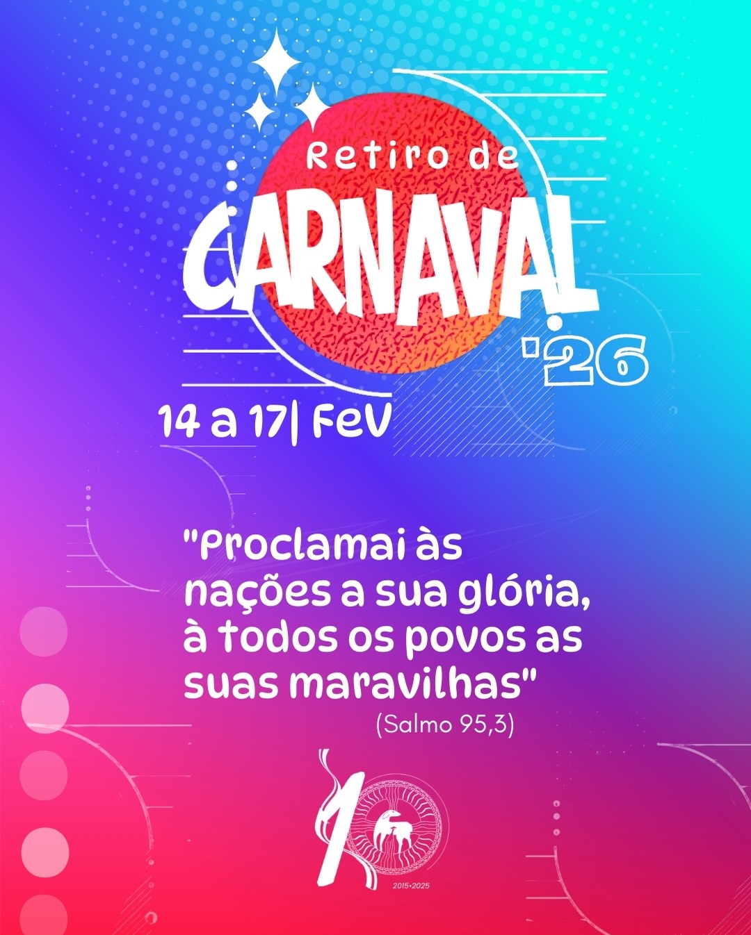Com o tema “Proclamai às nações a sua glória, a todos os povos suas maravilhas”, a Obra Álegrate de Maria convida toda a região a viver um Carnaval marcado pela alegria verdadeira, pela fé e pelo encontro pessoal com Deus.