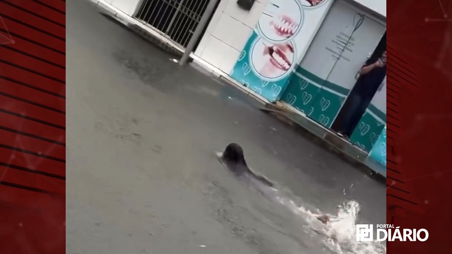 Uma cena inusitada ficou registrada após as fortes chuvas desta sexta-feira (6) em João Pessoa. Um vídeo que circula nas redes sociais, mostra uma jovem nadando em meio á rua alagada.