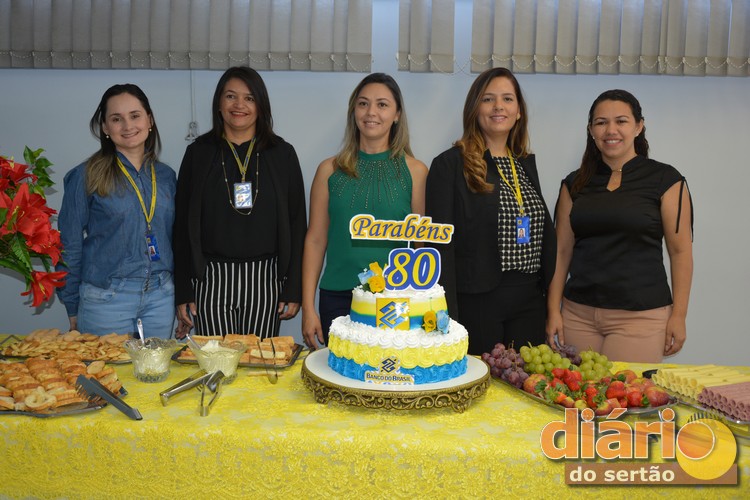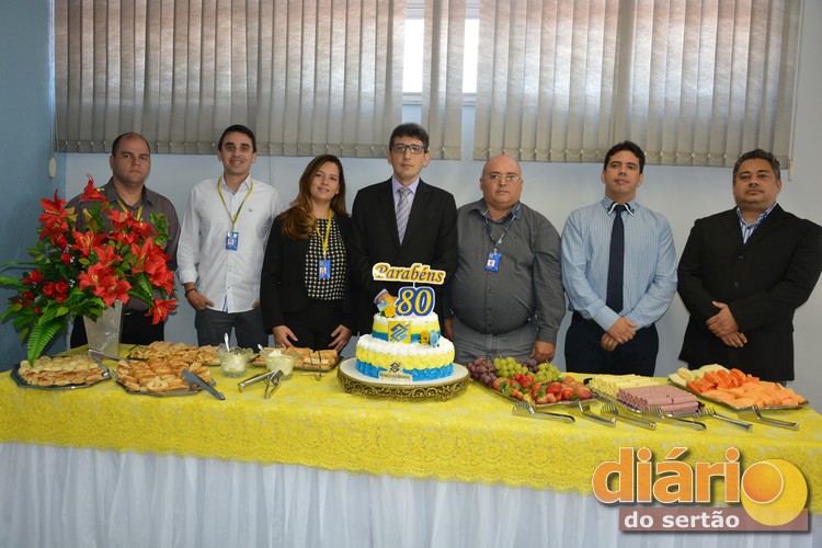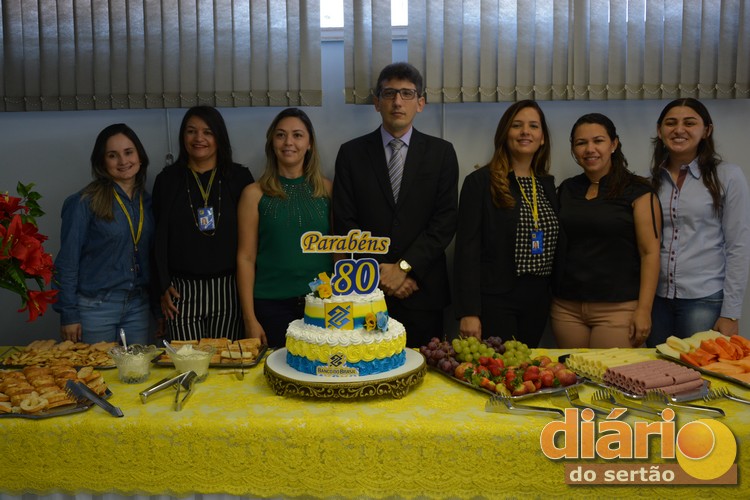 Funcionários da Agência do Banco do Brasil de Cajazeiras na comemoração dos 80 anos da instituição em solo sertanejo