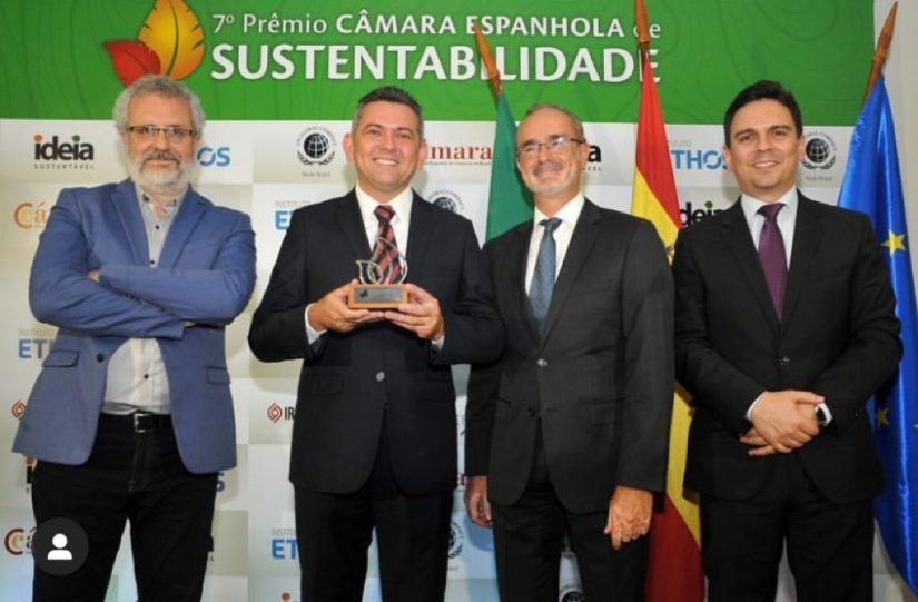 Ueliton Rolim Gonçalves (segundo à esquerda) recebe o Prêmio Câmara Espanhola na categoria Socioambiental