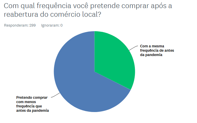 Cerca de 32% dos entrevistados afirmaram que só voltarão às lojas após duas semanas da reabertura do comércio. Já 26% aguardarão ao menos um mês antes de visitarem as empresas. 25% disseram que visitarão as lojas em até 3 dias e cerca de 17% visitarão entre quatro e seis dias após a reabertura.
