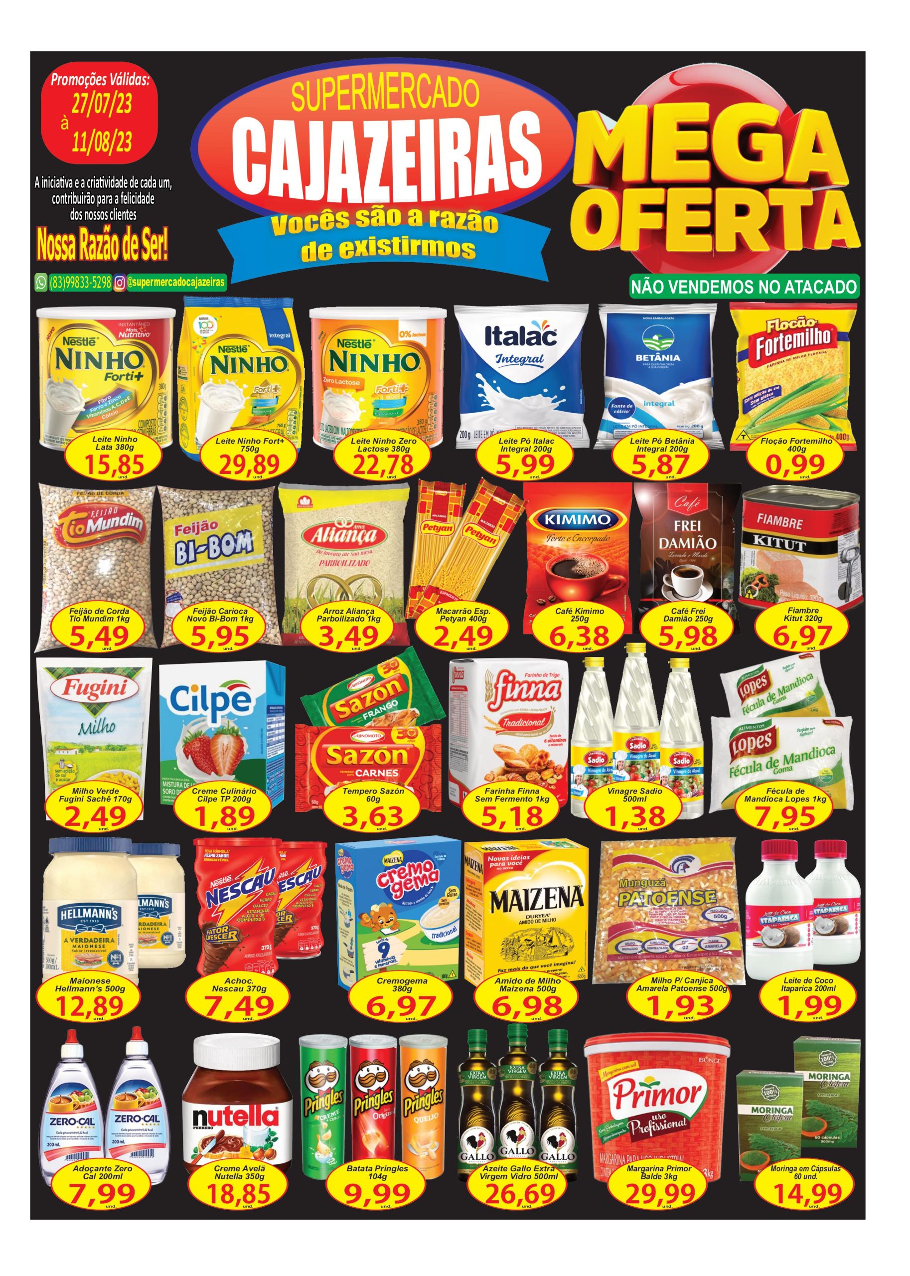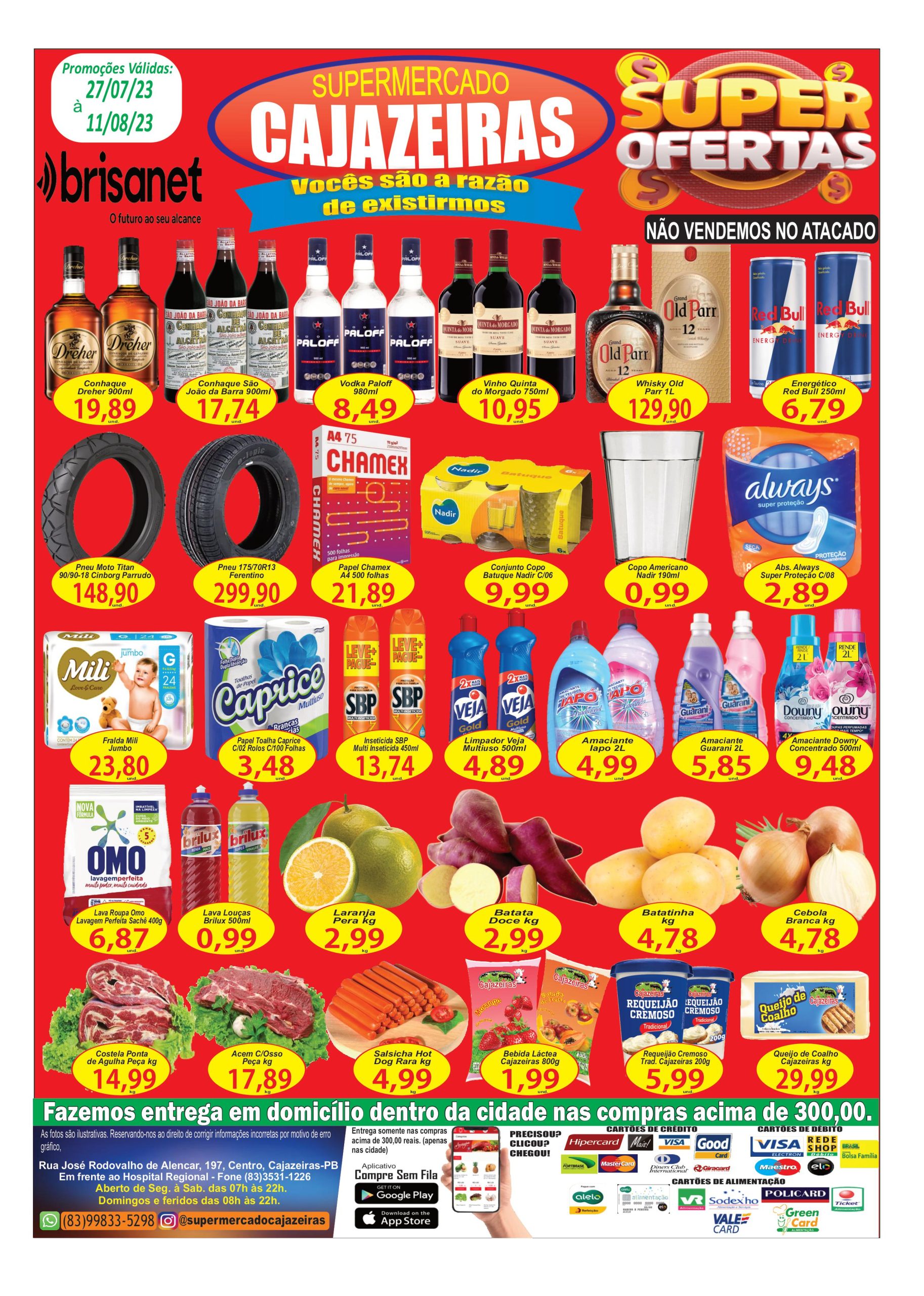 O Supermercado Cajazeiras sai na frente e sempre oferece o melhor para os seus clientes. A nova promoção que começou na última quinta-feira dia 27 traz diversos produtos com preços imperdíveis.