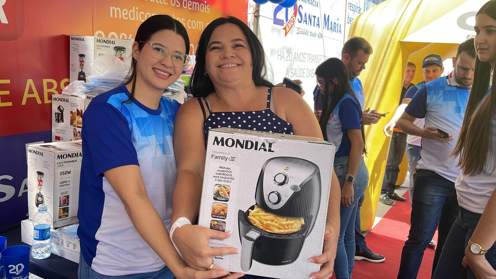 Muitos clientes aproveitaram as promoções de aniversário e também participaram de sorteios de brindes como: bolsas personalizadas, cafeteira, chaleira elétrica, air fryer, bicicleta, tv smart e vários outros. Além dos ótimos preços, sorteios e um atendimento de excelência, a Farmácia Santa Maria ainda disponibilizou profissionais de saúde para verificação de glicemia e pressão arterial.