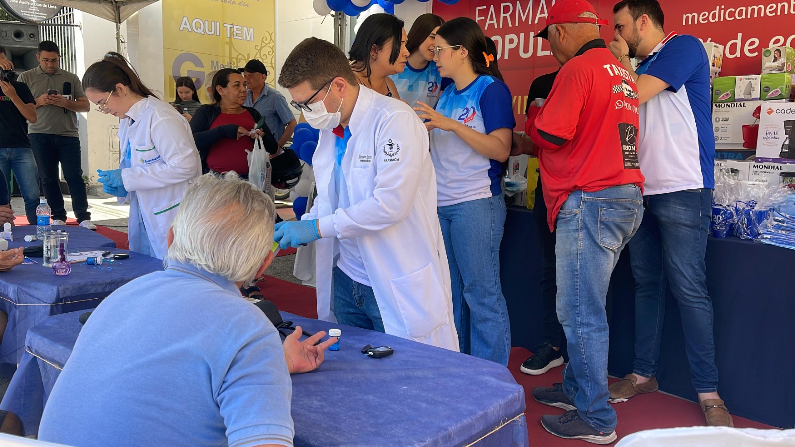 Profissionais de saúde realizaram aferição de pressão arterial e glicemia, dos clientes presentes – Foto: Fernanda Layse/Diário do Sertão