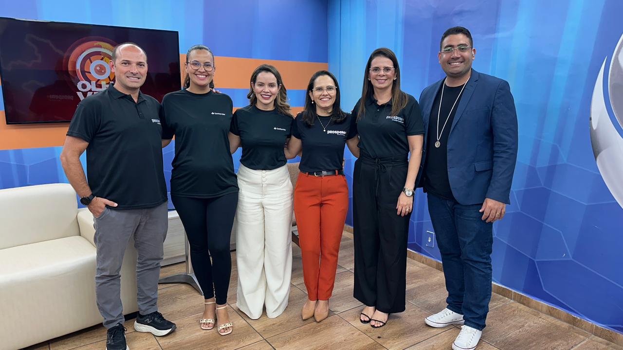 Equipe do Banco Santander foi recebida nos estúdios do programa Olho Vivo, da TV e Rede Diário do Sertão, pelo apresentador José Dias Neto (à direita) – Foto: Diário do Sertão