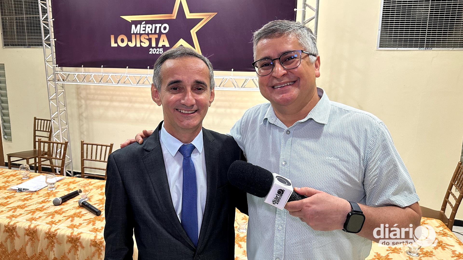 Empresário Osvaldo Martins, do Grupo Dical ao lado do presidente da FCDL-PB, Netinho (Foto: Mathias Diniz/ Diário do Sertão)
