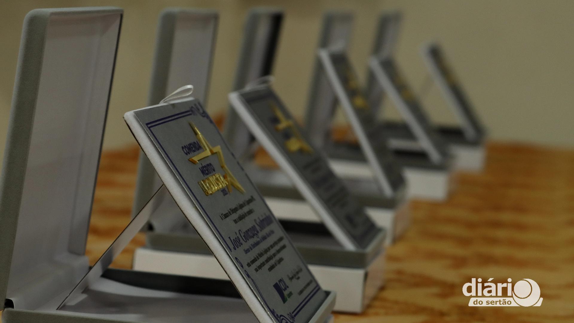 A cerimônia, realizada no auditório da CDL, agraciou com a honraria os empresários (Foto: Mathias Diniz/ Diário do Sertão)