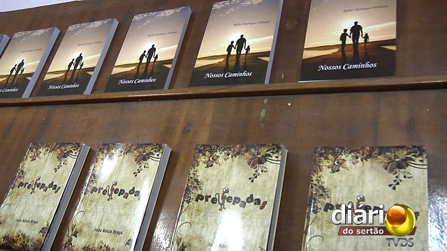 Livros “Nossos Caminhos” e “Presepadas” no estande de venda da biblioteca