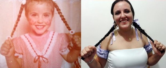 Nas redes sociais compararam uma foto de Cláudia Dias na infância com uma atual e comentaram: "Não mudou nada"