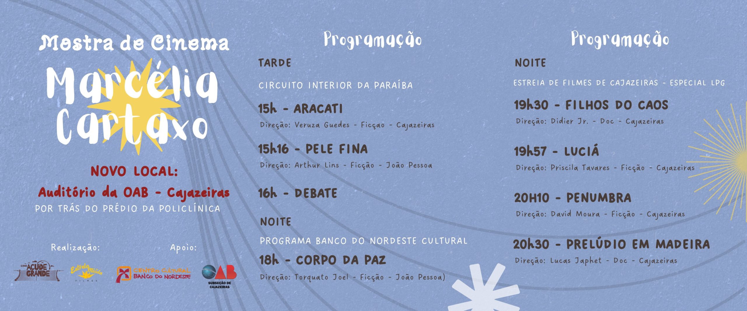 O filme faz parte da programação da Mostra de Cinema Marcélia Cartaxo que acontece nessta terça-feira (15) a partir das 15h no auditório da OAB Cajazeiras. O evento é uma extensão do Festival Cine Açude Grande e tem o intuito de oferecer um momento de trocas e debates acerca do que se tem produzido no cinema e circulado no estado.