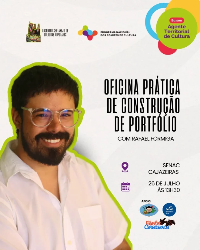 Durante a tarde, os participantes terão acesso a uma oficina prática de construção de portfólio artístico. Esta ferramenta é considerada essencial para a inscrição em editais de fomento e a participação em projetos culturais. A proposta é que, ao final do encontro, cada artista tenha seu portfólio elaborado, ampliando suas oportunidades de acesso a recursos e visibilidade no cenário cultural.