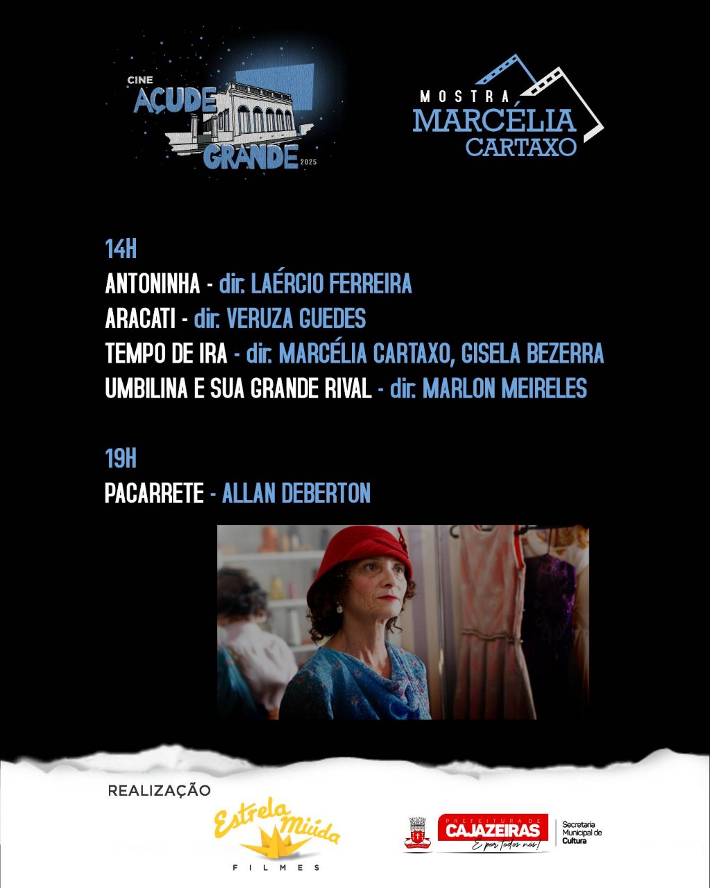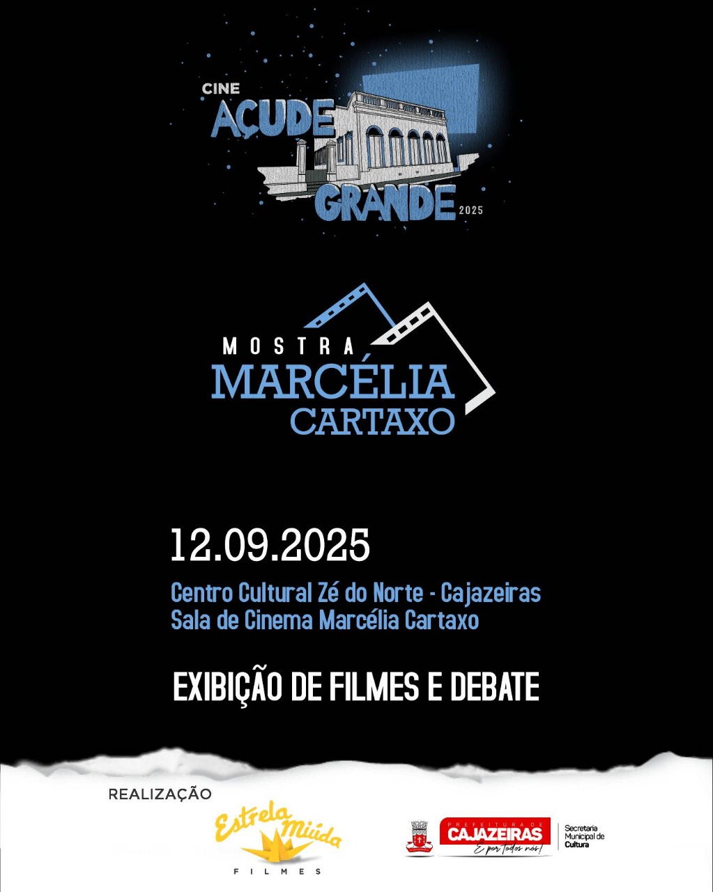 A Mostra Marcélia Cartaxo é uma realização da Estrela Miúda Filmes em parceria com a Secretaria de Cultura de Cajazeiras, e reforça a importância de valorizar e divulgar os talentos da região e a produção cinematográfica nacional. A entrada é gratuita.