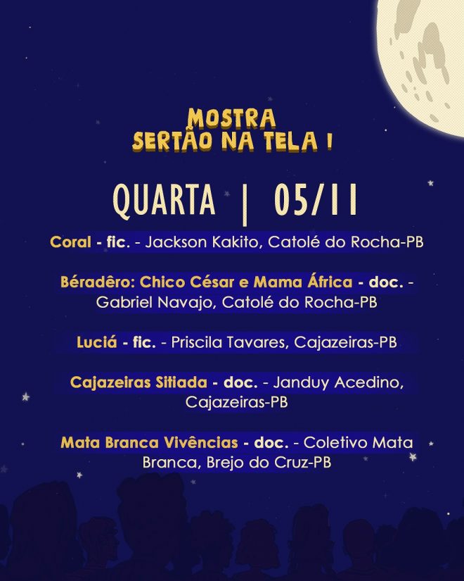 - Mostra Longa Paraíba: Exibição de um filme sobre o escritor Ariano Suassuna e o Movimento Armorial.