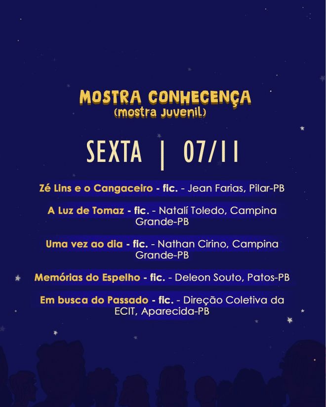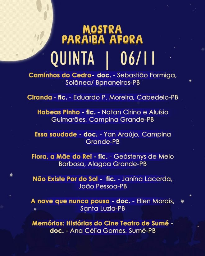 - Mostra Paraíba Afora: Filmes de várias regiões do Estado.