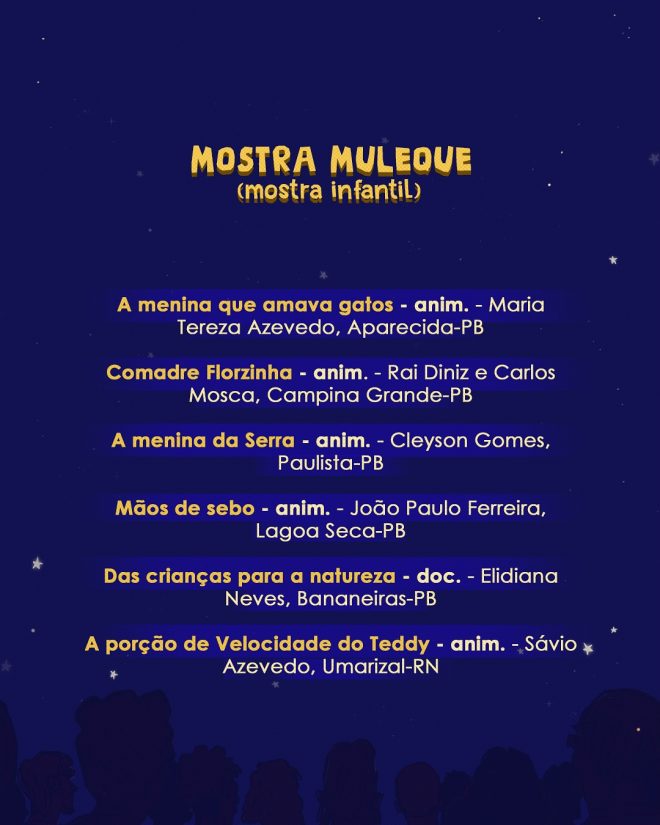 - Mostra Muleque: Filmes infantojuvenis para alunos da rede municipal.