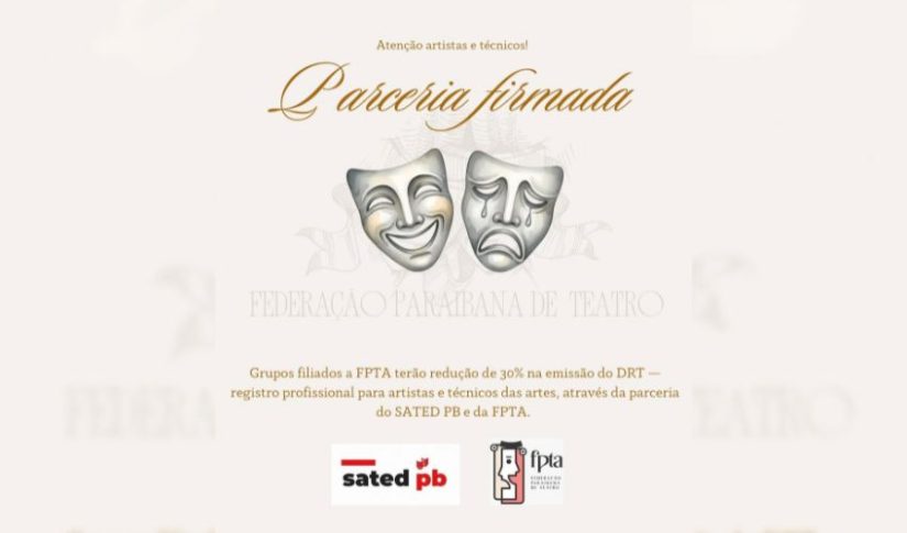 A Federação Paraibana de Teatro (FPTA) e o Sindicato dos Artistas e Técnicos em Espetáculos de Diversões do Estado da Paraíba (SATED-PB) anunciaram uma parceria voltada para simplificar a obtenção do Registro Profissional (DRT) por artistas, técnicos, grupos e companhias no estado. O objetivo central é facilitar a regularização profissional da categoria.